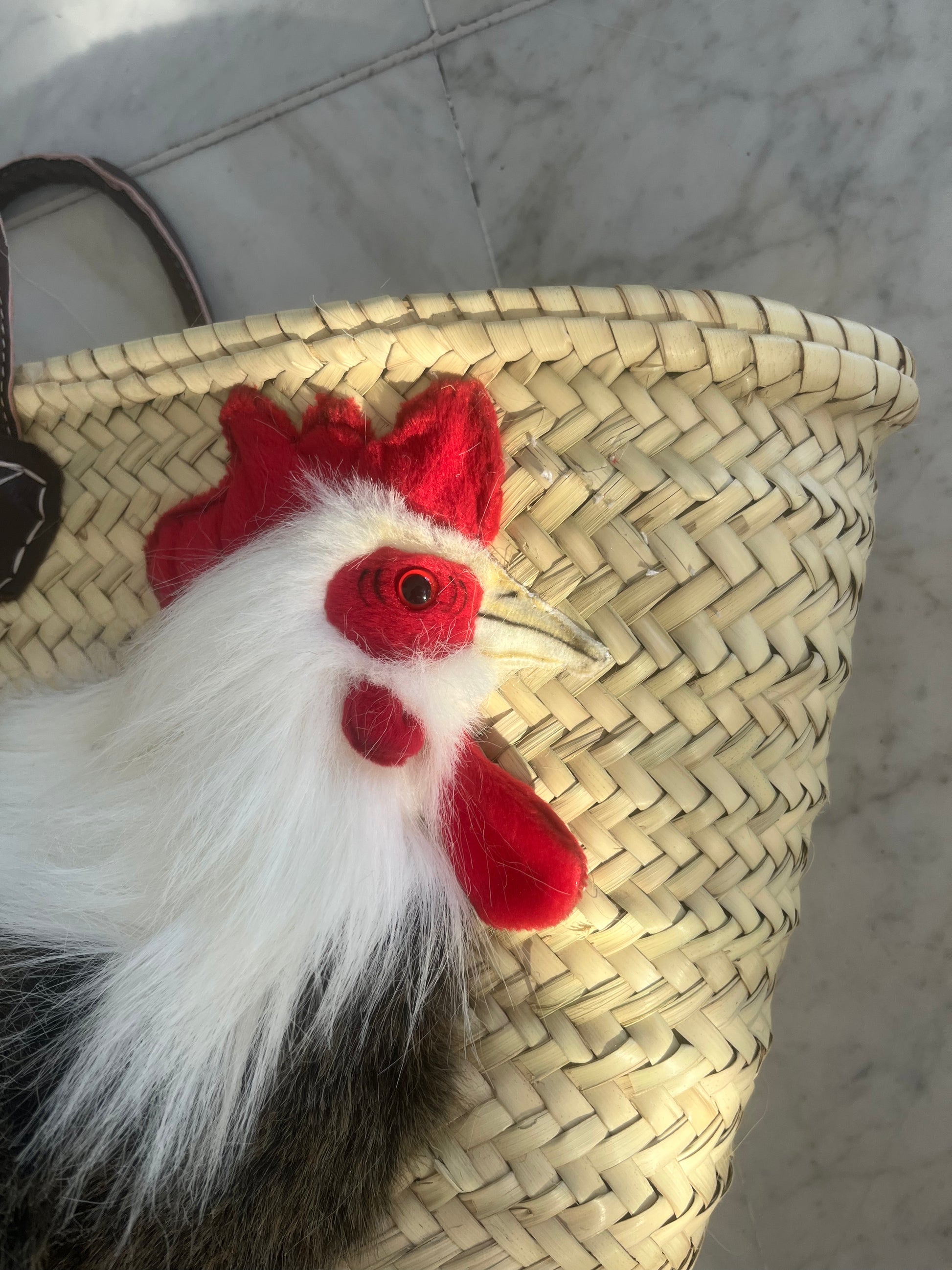Große Korbtasche mit Hahn Hugo, Ledergriffe und Ledertasche innen