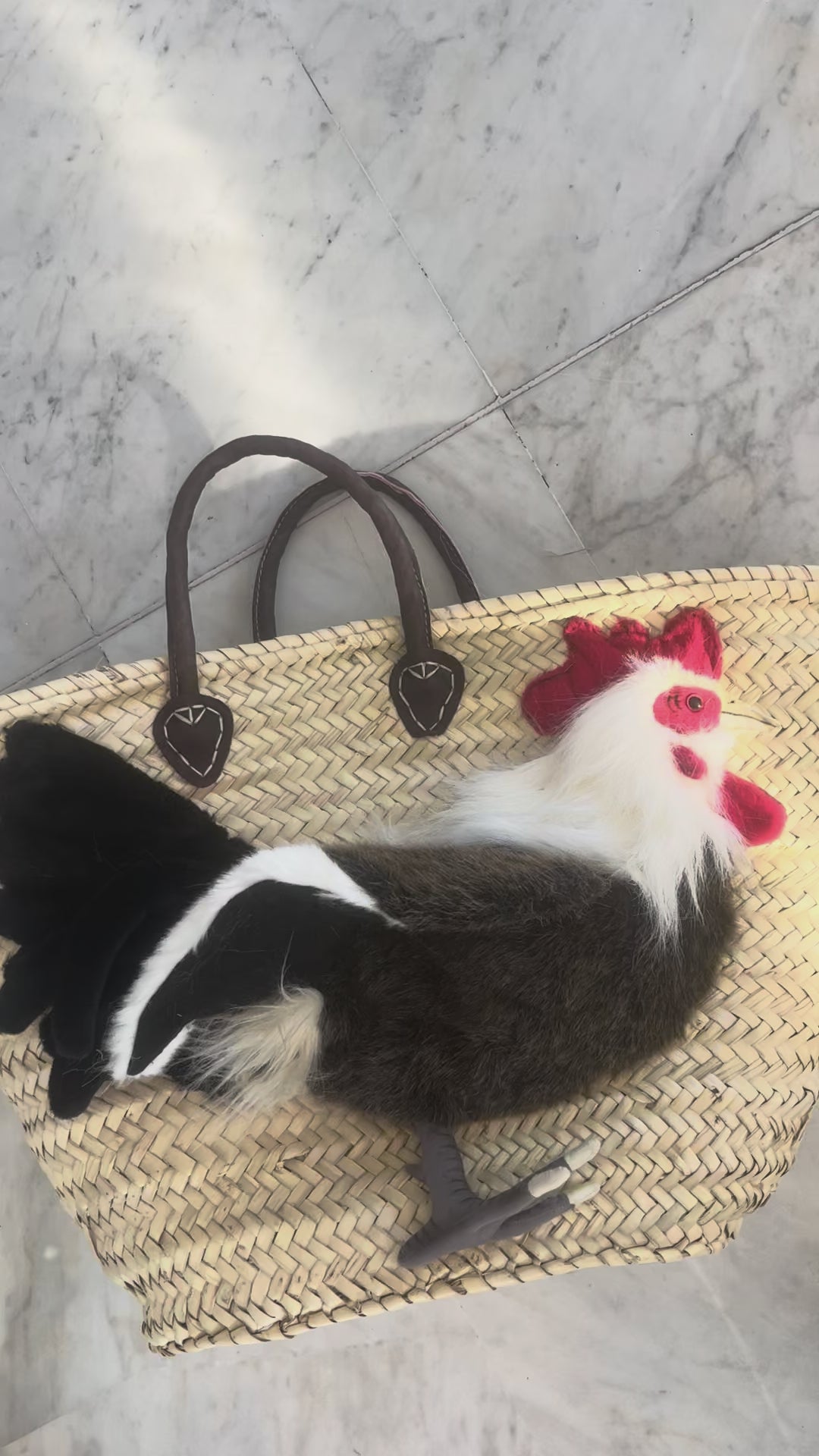 Unsere handgemachte Korbtasche mit Ledertasche innen ist aus natürlichen Palmblättern und Seegras geflochten und hat eine Hugo der Hahn Applikation. Das eyecatcher Design und die tolle Verarbeitung machen sie zum perfekten Begleiter und sind auch ein tolles Geschenk für alle Frühaufsteher,/Spätaufsteher- und Natur-und Hahn-Fans! Ihr könnt euch vorstellen, dass diese Korbtasche DAS Gesprächsthema wird, wenn ihr sie dabei habt.